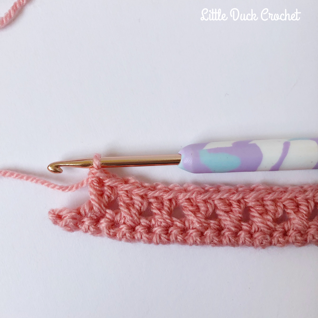 Repeat this all the way until the last st, 1 dc and turn