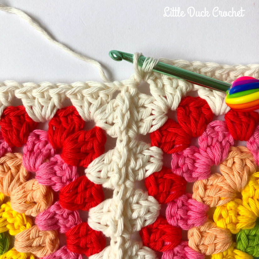 • When I make my grannies, I turn after each row to avoid them going twisted. This method helps keep the sides nice and straight.
