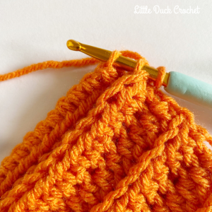- Hdc Blo – Half double crochet back loop only (UK Half treble back loop only)