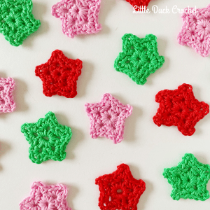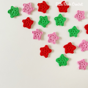 These stars are super quick to make up, using only chains and single crochet and 2 rounds! Simply add a thread and they can be used to decorate your tree or for tags on your Christmas gifts, or turned into a garland to hand in the fireplace.